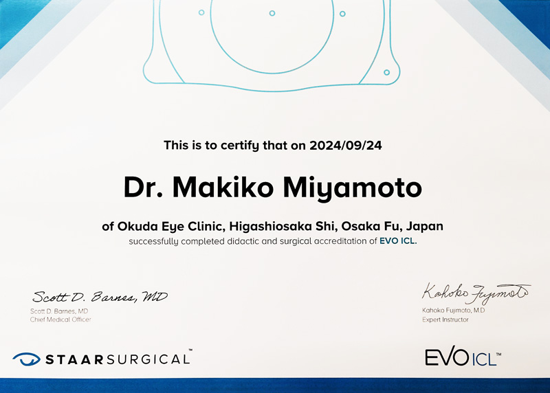 ICLは、必要に応じて取り出すことも可能で、将来的な柔軟性にも配慮された治療法です。日本では2010年2月に厚生労働省より高度医療機器として承認されています。